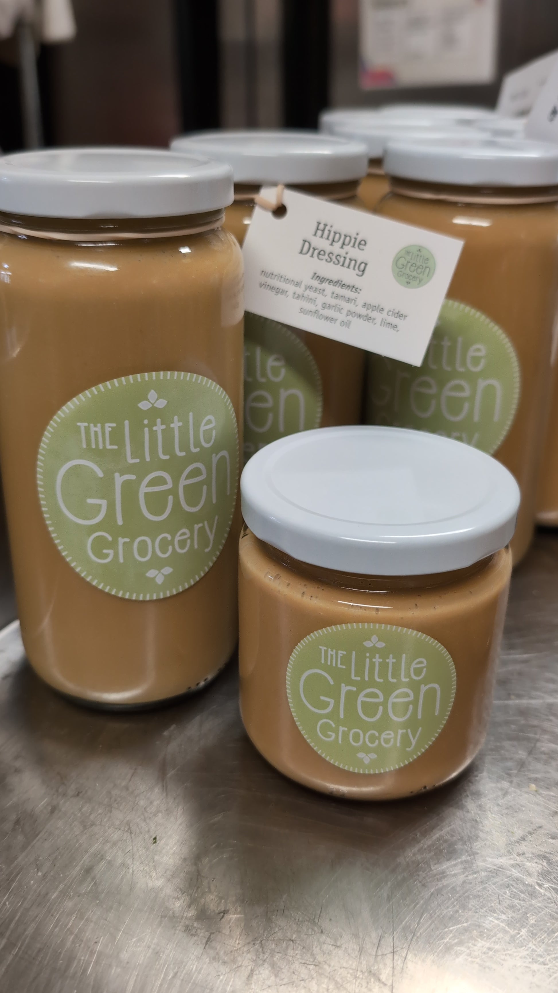 Sunflower oil, cider vinegar, tahini, tamari, nutritional yeast, lime, garlic powder